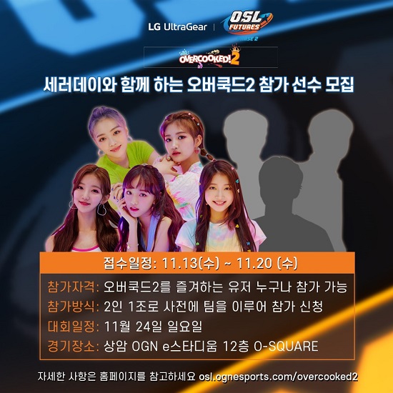 ... 이번 ‘오버쿡드2’는 캐주얼 게임답게 치열한 승부보다는 즐길 수 있는 방식으로 대회를 진행한다. 본선은 2인 1팀 16강 토너먼트로 진행되며 더 즐거운 게임을 위해 걸그룹 ‘세러데이’ 등 연예인 참가자가 함께 대회에 출전해 일반인
