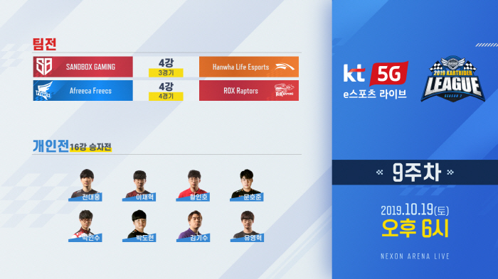 ... 그러나 저력을 발휘한 샌드박스 게이밍이 아이템전 역스윕을 거뒀고, 이후 에이스 결정전에서 박인수가 이재혁을 상대로 승리, 본인의 에이스 결정전 무패 기록을 이어가며 팀에게 1승을 안겼다. 이어진 4강 2경기에서는 카트라이더 리그의 대표적 라이벌인 문호준과 유영혁이 각각 이