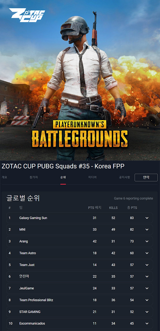 ... 3위 ‘Arang’은 총 73점으로 격차가 크게 벌어지며 3위를 차지했다. 이번 조텍컵에서는 FPP 전문 스트리머 ‘멜론’이 중계를 진행하여 참가자들 뿐만 아니라 중계를 보는 재미까지 더했으며, 중계 시청자를 대상으로 &lsquo