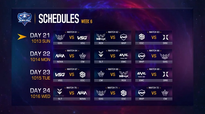 ... 지난 4주차까지 8승을 기록하면서 전체 순위 2위를 달성한 ROX였지만, 지난 7일 NOVA에게 3대 0으로 완패를 당하고, GOG와의 대결에서도 패배하며 4위까지 떨어졌다. 특히, 1∙2위 팀들 간의 대결이었던 GOG와 ROX의 경기에서는 치열한 접전 끝에 ROX가 아쉽게 패
