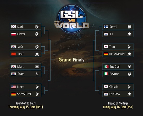 ... 한국을 대표하는 선수 8명(GSL 팀)과 북미, 남미, 유럽, 중국 등 한국을 제외한 전세계 지역을 대표하는 선수 8명(The World 팀) 등 스타크래프트 II e스포츠 최고 기량의 선수들이 대결하는 GSL vs the World는 개인전 총 상금이 1억원으로, WCS