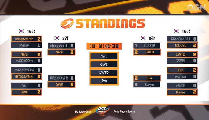 ...D(°빛대)‘ 등 4인의 토너먼트가 전 경기 3판2선승제로 진행됐다. 한 경기에서 지더라도 패자에게 또 한 번 도전의 기회가 주어지는 듀얼 토너먼트 방식으로 실시돼 마지막까지 손에 땀을 쥐게 하는 관람의 재미를 시청자들에게 선사했다. 실제로 경기는 실시간