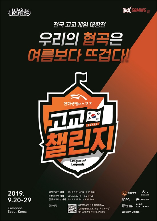 ... 이번 대회는 국내 최초로 전국 단위의 고등학생을 대상으로 한 e스포츠 대회다. 특히, 학교별 대항전으로 진행되는 만큼 대회의 열기와 관심은 그 어느 때 보다 뜨거울 것으로 예상된다. 대회는 전국에 소재한 고등학교에 재학 중이며 동일한 학교 소속의 5인으로 이뤄진 팀
