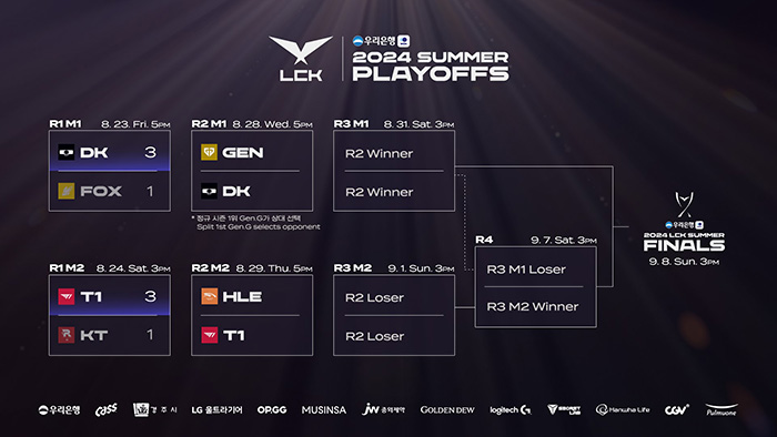 ...com, 이하 'LCK')는 오는 23일(금)과 24일(토) 이틀 동안 서울 종로구 롤파크에 위치한 LCK 아레나에서 열리는 우리은행과 함께 하는 2024 LCK 서머 플레이오프 1라운드에서 디플러스 기아와 BNK 피어엑스, T1과 KT 롤스터가 외나무 다리 승부를