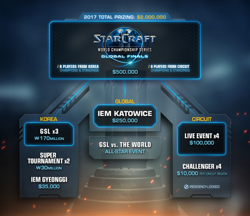 ... 글로벌 WCS 구조의 경우 올해와 마찬가지로 두 가지 순위 체계(WCS Korea, WCS 서킷)로 나뉘어 운영된다. 먼저 WCS Korea 순위 체계는 세계 최고의 스타크래프트 II 선수들이 경쟁하는 가장 치열한 지역인 만큼 해당 체계에 속하는 공식대회 대다수가 한국에서 진