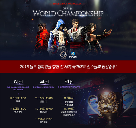 ... 2012년 런칭 이후 블소는 PvP 콘텐츠를 특화해 이용자끼리 새로운 즐거움을 느끼고 참여할 수 있도록 비무 대회를 열고 지속적으로 진행하고 있다. 올해는 '블소 토너먼트 2016'라는 이름으로 작년에 이어 e스포츠로서 도전을 이어간다. 국내 유일 토종 e스포츠로 글로벌까지