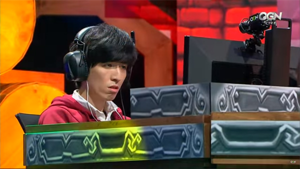 ... 2세트는 도적을 선택, 묘실도굴꾼으로 기세를 잡기 시작해 가젯잔 경매인 카드로 이득을 챙긴 후 리로이 젠킨스 카드로 끝냈다. 마지막 3세트는 운도 따랐다. 전사를 택한 곽웅섭은 중반부 필드 장악을 뺏기지만 라그나로스 카드로 분위기를 반전에 성공한 뒤 최종전에 진출했