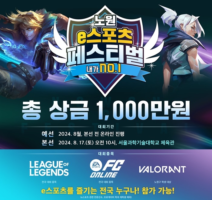 ... 구는e스포츠에 대한 사회적 관심이 높아지고 있는 만큼,다양한 볼거리,참여형 이벤트를 결합한e스포츠 페스티벌을 열어 온 가족이 함께할 수 있는 화합의 장으로 만든다는 계획이다. 대회는 전국대회와 노원구 학생 대회로 나뉘어 진행되며,온라인 예선을 거쳐 페스티벌 당일 본선