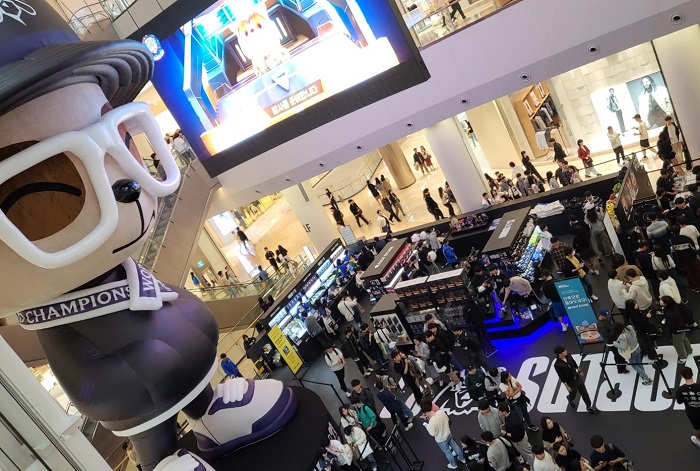 ... 팝업스토어 입구에는 LoL 월드 챔피언십 로고가 달린 옷을 입은 2. 5m짜리 티버가 팬들의 시선을 붙잡는다. 15m짜리 초대형 티모와 앞뒤로 배치되어 있어 인증 사진을 찍기 가장 좋은 구도를 이루고 있다