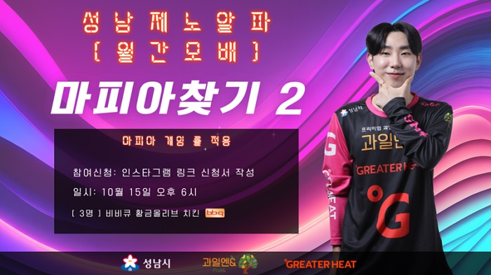 ... 참가자들은 숨어있는 선수를 잡기 위한 데스매치를 진행하고 팬들 사이에 숨어 게임을 진행하는 선수를 먼저 찾아 잡아내는 팬 총 3명에게는 비비큐 황금올리브 치킨이 상품으로 제공된다. 성남제노알파 월간모배는 평균 90여명의 팬들이 참여하는 성남 제노알파의 월간 팬 이벤트이며