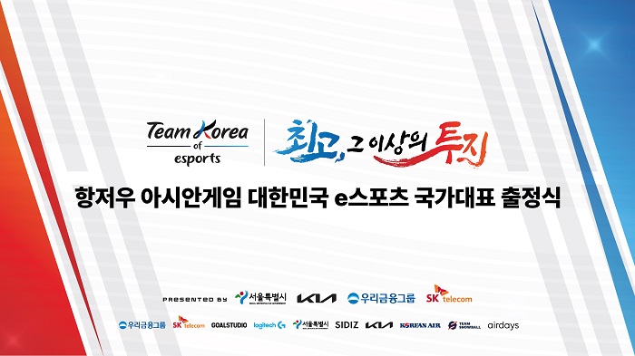 ... 이어 우리금융그룹의 e스포츠 국가대표 응원곡 및 영상이 처음 공개되고, 골스튜디오의 국가대표 유니폼 소개발표 또한 진행될 예정이다. 항저우 아시안게임 e스포츠 국가대표팀은 ‘최고, 그 이상의 투지’를 슬로건으로 삼고, 출정식을 기점으로 본격적인 합숙