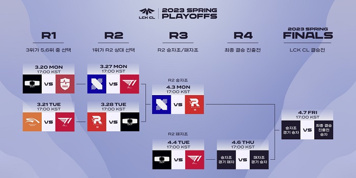 ... 플레이오프 3라운드 승자조에서는 DRX와 kt 롤스터가 대결하게 됐고, 패자조에서는 디플러스 기아와 T1의 물러날 수 없는 대결이 성사되었다. ◆ PO 3라운드, 3일 승자조 DRX vs KT, 4일 패자조 DK vs T1 대결 3일(월) 오후 5시 플레이오프 3라운