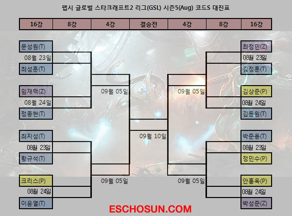 ... 이날 경기에서는 지난 GSL 시즌4(July) 준우승자 황강호(IM)와 4강 진출자 안홍욱(프라임), 16강 진출자 정민수(MVP), 김상철(oGs)을 비롯해 '투신' 박성준 등 쟁쟁한 선수들이 다수 포함돼 흥미진진한 경기가 예상됐다. 치열한 접전끝에 G조에서는 박준용과