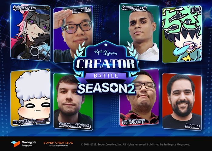 ... 스마일게이트 메가포트는 지난 3일 에픽세븐 공식 유튜브 채널을 통해 대전에 참가하는 8개의 팀을 소개하고 대진 추첨도 진행했다. 이번 시즌2 대회에는 한국과 북미, 유럽은 물론 일본, 대만 등 시즌1 보다 더욱 다양한 국가의 크리에이터들이 참여하며 팀 구성 역시 언어와 지