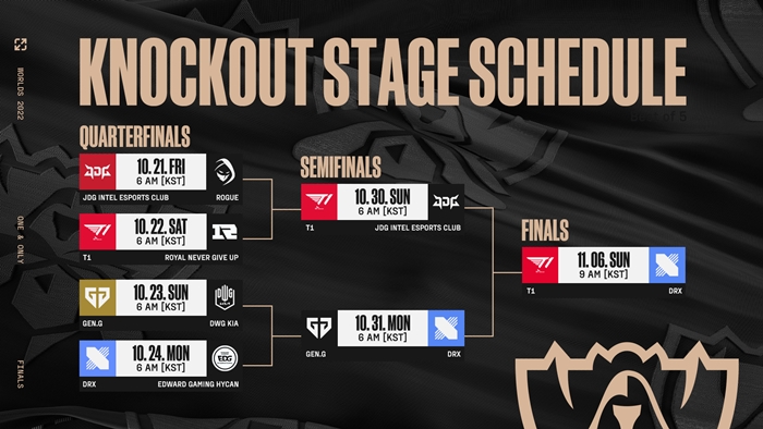 ... 12회째를 맞이하는 롤드컵의 역사에서 LCK 팀끼리 결승전에서 맞붙는 것은 올해로 네 번째이다. 2015년 SK텔레콤 T1과 KOO 타이거즈가 결승에서 대결을 펼쳤고 2016년과 2017년 SK텔레콤 T1과 삼성 갤럭시가 2년 연속 결승전 무대에 올랐다. 2022년 T1