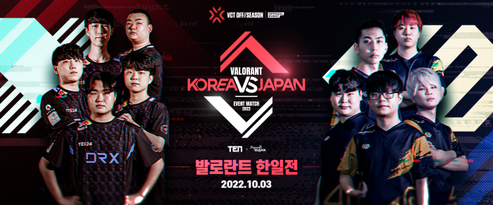 ... ‘발로란트 한일전’은 5판 3선승제로 진행된다. 발로란트 e스포츠에서 한국 팀 사상 최고 성적을 기록한 ‘DRX’에 맞서 ‘노셉션’이 VCT 마스터스2 당시 ‘DRX’에 패한 것에 대한