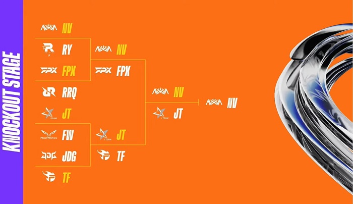 ... 한국 대표로는 와일드 리프트 챔피언스 코리아 우승팀인 롤스터 Y와 준우승 팀인 광동 프릭스, 3위를 차지한 T1이 출전했다. 플레이-인 스테이지에 참가한 T1과 광동 프릭스 가운데 T1이 C조 2위를 차지하면서 그룹 스테이지에 진출했다. 광동 프릭스는 중국 팀이 없는 D