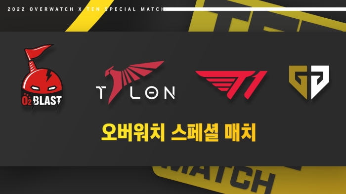 ... ‘오버워치 x TEN 스페셜 매치’는 자유 경쟁전 기반으로 5전 3선승제 싱글 엘리미네이션 토너먼트 방식으로 진행된다. 출전팀은 국내 오버워치 e스포츠 대회에서 두각을 나타내고 있는 인기팀 O2 Blast, Talon, T1, Gen. G 총 4개팀이