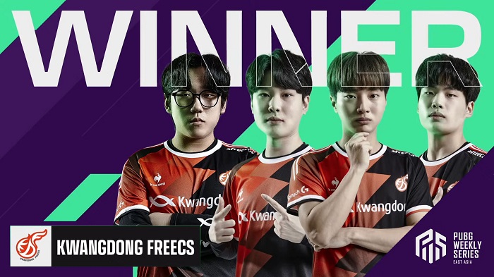... 이들은 지역별로 치러진 위클리 서바이벌의 상위 4개 일본팀과 상위 4개 차이니즈 타이페이/홍콩/마카오 팀과 함께 총 10매치를 치렀다. 그 결과, 3주 차 위클리 파이널에서는 한국의 KWANGDONG FREECS가 56킬, 순위 포인트 48점, 총점 104점으로 승리팀에