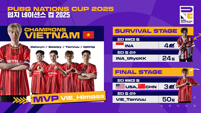 ... 이번 대회의 총 시청 수는 약 1,240만 회로 PNC 2024의 550만 회 대비 약 124% 증가했다. 최고 동시 시청자 수는 81만 명으로 전년도의 51만 명 대비 59% 상승해 PNC 시리즈 중 가장 높은 수치를 기록하는 등 PNC 2025에 대한 전 세계 팬들의 뜨거운