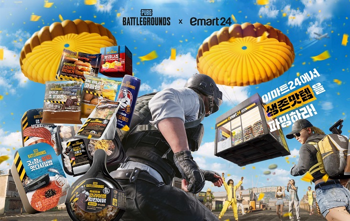 ... 컬래버레이션 제품은 간편식과 디저트를 중심으로 한 구성이다. 대표적인 간편식으로 ▲프라이팬 치킨이닭파스타 ▲뚝쉐프의 뚝배기 불고기정식 ▲햄낙하! 부대찌개 덮밥 등이 있으며, 디저트는 ▲배틀그라운드 에너지드링크 ▲보급상자 나쵸큐브콤보▲태이고 초코와플 ▲ 사녹 바나나 마들렌