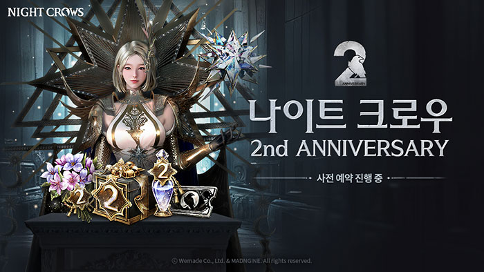 ... 사전예약은 사전예약페이지에서 핸드폰 번호를 입력해 참여할 수 있다. 위메이드는 예약자들에게 ‘2주년의 약속 두루마리’, ‘황혼의 찬란한 탈것/무기 외형 소환’ 등이 포함된 ‘2주년 사전예약 감사 선물’을 제공