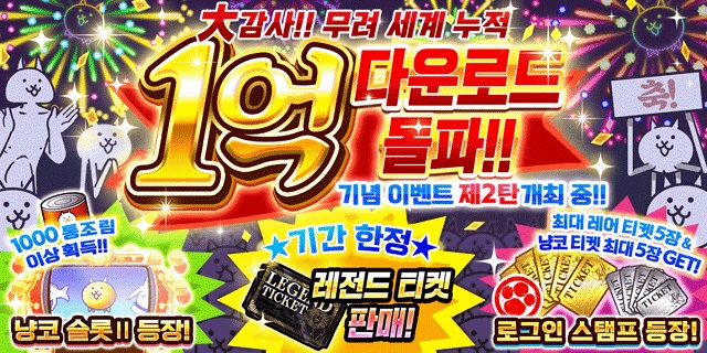 ... 그 외에도 고양이 통조림을 1,000개 이상 획득 가능한 '냥코 슬롯' 이벤트, 로그인 스탬프 이벤트, 한정 미션 이벤트 등 다양한 이벤트를 진행할 예정이다. 보다 자세한 내용은 게임 내 공지사항을 통해 확인할 수 있다. 포노스는 일본