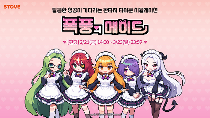 ... 메이드 카페에서 벌어지는 여러 에피소드와 치열한 영업 경쟁, 다양한 미니 게임도 즐길 수 있다. 스토브인디와 퍼블리싱 계약을 체결한 ‘폭풍의 메이드’는 내달 23일(일)까지 텀블벅을 통해 크라우드 편딩을 진행한다. 펀딩과 함께 스트레치골 이벤트도 진