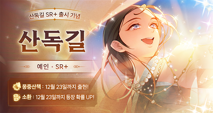 ... 이번 업데이트에서 가장 눈길을 끄는 것은 신규 SR+ 역졸 ‘예인·산독길’의 합류다. 산독길은 이번 업데이트를 통해 픽업 소환으로 만나볼 수 있으며, 한정 기간 동안 몽중산책에 등장하고, 인연의 서도 새롭게 추가되어 그