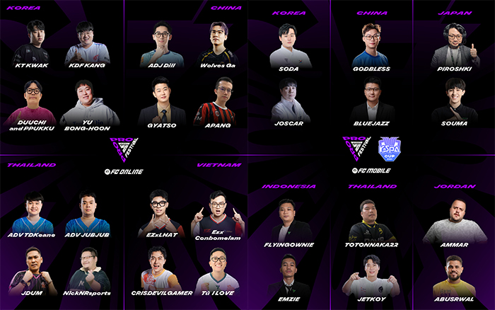 ... 금번 대회에서는 아시아 각국의 참가자들이 다양한 엘리트 및 엔터테인먼트 중심의 토너먼트 이벤트를 선보일 예정이다. 이전 FC 프로 페스티벌에서 볼 수 있었던 유명 FC 온라인 프로 선수들은 물론, FC 온라인과 FC 모바일의 인플루언서와 아마추어 선수들도 페스티벌에 참가하