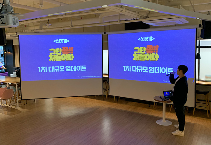 ... 박장수 대표는 ‘그만쫌쳐들어와’ 출시 후 20일 간의 여정에 대해 직접 브리핑했다. 출시 9일 만에 구글 플레이스토어 인기 게임 2위와 신규 가입자 30만 명을 달성하고, 현재도 일간 접속자 수가 가파르게 오르고 있음을 알렸다. 이와 함께 이용