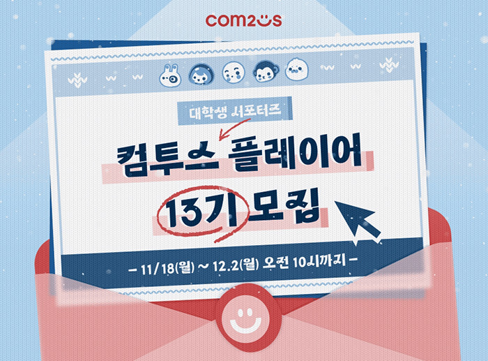 ... 컴투스 그룹과 게임 산업에 관심이 높은 국내 거주 대학생 누구나 지원할 수 있으며, 영상 및 디자인 관련 전공자나 SNS 활동 경험 등을 우대한다. 참여를 원하는 대학생은 12월 2일 오전 10시까지 컴투스 그룹의 채용 홈페이지에서 지원할 수 있다. 지원자는 참가 신청