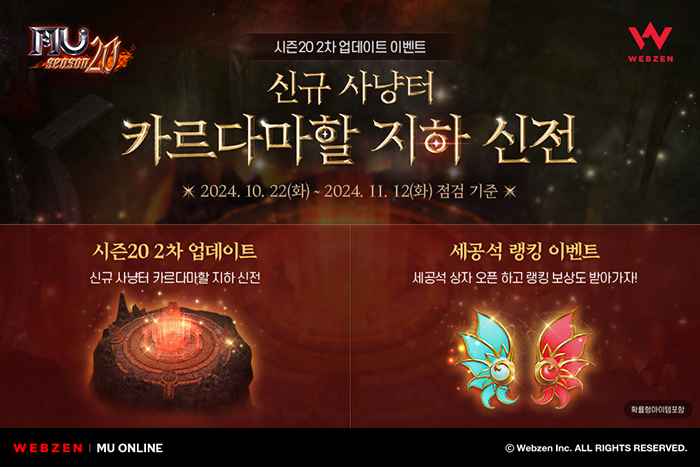 ... 웹젠은 업데이트를 기념해 오늘 점검 이후부터 11월 11일까지 일주일씩 총 3번의 집계 기간을 나눠 세공석 랭킹 이벤트를 진행한다. 회원들은 세공석 상자를 오픈할 때마다 랭킹 포인트를 10점씩 획득할 수 있고, 누적된 점수에 따라 보상을 얻을 수 있다. 매주 1위에게는