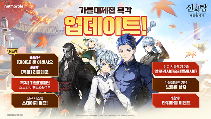 ... 여기에 매일 1시간씩 참여할 수 있는 한가위 이벤트 정예 던전 ‘온가을달 호수’도 추가했다. ‘온가을달 호수’ 내의 몬스터를 처치한 이용자들에게는 다양한 인게임 보상으로 교환할 수 있는 ‘풍요로운 한가위 가위바위보 티켓
