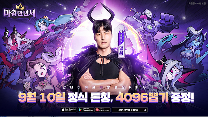 ... '마왕만만세'는 사전예약자 50만을 돌파, 성황리에 정식서비스를 시작하며 156만 유튜버 말왕과의 콜라보 뮤직비디오(https://www. youtube. com/watch?v=Jcrg6qzs820) 풀버전을 공개해 화제를 모으고 있다