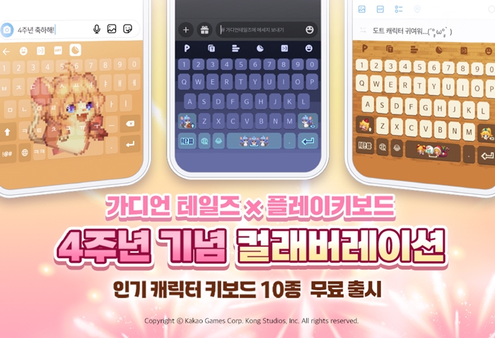 ...이용자는 플레이키보드를 기본 키보드로 설정한 후 ‘일러스트형’,‘배경형’,‘이모티콘형’ 등의 다양한 ‘가디언 테일즈’ 테마 키보드로 입력을 즐길 수 있다. 카카오게임즈는 지난11일과12일1