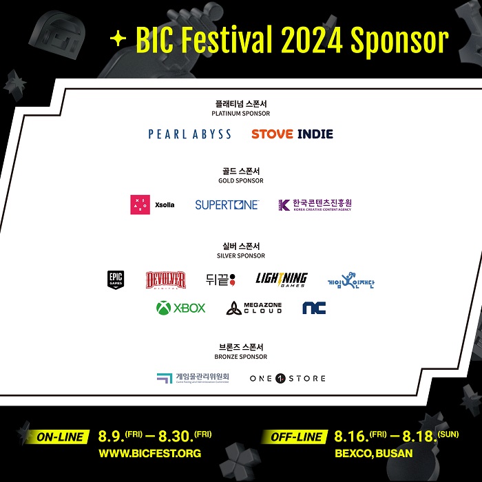 ... 우선 플래티넘 스폰서로 2개 사가 참여하며, 자체 엔진으로 개발한 ‘검은사막’을 전 세계 150여 개국에 직접 서비스 중인 글로벌 게임사 ▲펄어비스, 유저의 즐거움과 창작자의 성장이 만나는 곳, 인디게임 전문 플랫폼 ▲스마일게이트 스토브인디가 참여하며
