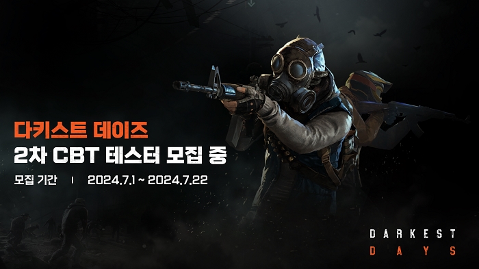 ... 2차 CBT는 7월 25일(목)부터 7월 31일(수) 총 7일 간 한국 이용자를 대상으로 진행될 예정이다. 참여를 원하는 이용자는 오늘부터 22일까지 ‘다키스트 데이즈’공식 사이트를 통해 신청할 수 있다. 추첨을 통해 총 30,000명을 모집할 예정