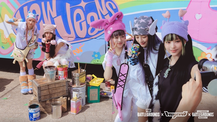 ... NJ Tokki가 그려진 보급함이 비행기에서 떨어지는 장면으로 시작하는 영상은 배틀그라운드 x 뉴진스 테마의 배낭, 헬멧, 무기와 배틀그라운드 x 뉴진스 캐릭터의 낙하하는 장면이 교차되며 이목을 집중시켰다. 특히 영상 말미에는 배틀그라운드 x 뉴진스 캐릭터가 ‘Sup