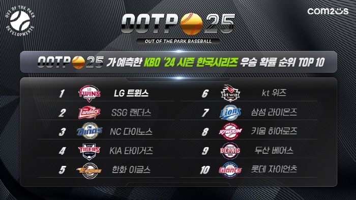 ... ‘LG 트윈스’는 지난해 정규 시즌 1위와 한국 시리즈까지, 29년 만에 통합 우승이라는 역사를 남겼다. 다음으로는 ‘SSG 랜더스’가 약 20%의 확률로 우승을 차지할 것으로 예상됐고, ‘NC 다이노스’가 그 뒤