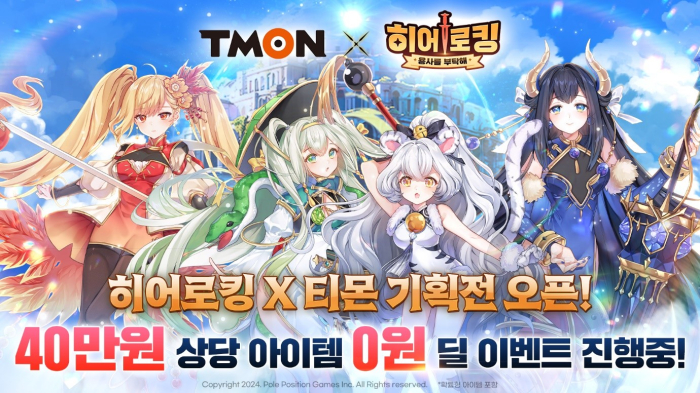 ... 또한, 게임 설치 후 5분만 플레이해도 용사 15레벨 달성할 수 있으며 달성 시 게임 내 노출된 티몬 아이콘을 통해 10,000명 한정으로 티몬 신규 회원은 5천 원, 기존 회원은 2천 원 할인 쿠폰을 지급한다. 추가로 오늘(9일) 티몬에서 진행하는 라이브 방송에서 커뮤