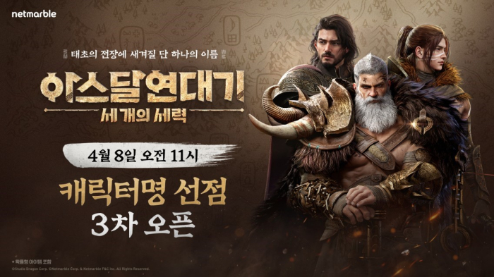 ... 이번에 오픈되는 서버는 4개이며, 출시 전 진행되는 마지막 캐릭터명 선점 이벤트가 될 예정이다. 이와 함께 넷마블은 <아스달 연대기: 세 개의 세력> PC버전 자동설치 예약을 진행한 페이지를 스크린샷해 공식 포럼 게시판에 올리면 추첨을 통해 '탑승물 11