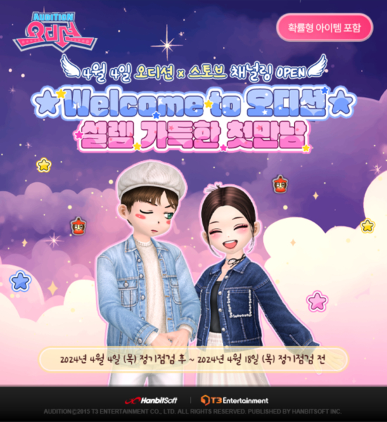 ... 이 게임은 신나는 음악을 들으며 화면에 표시되는 방향키를 키보드로 입력하거나 리듬볼을 마우스로 돌리는 등의 조작을 통해 나만의 캐릭터로 화려한 댄스를 뽐낼 수 있는 스타일리시 리듬댄스게임이다. 오디션은 자체 포털인 '한빛온' 서비스뿐만 아니라 다음, 한