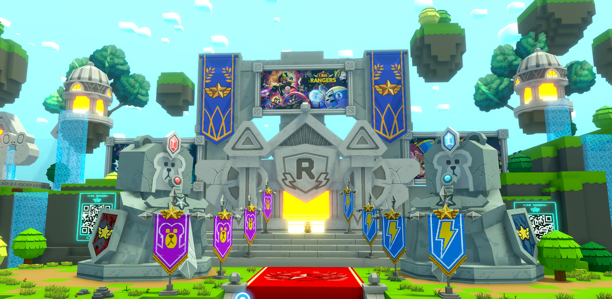 ... 라인스튜디오 테마 공간은 메타버스 공간에서 사용자들이 대표 모바일 게임인 라인 레인저스(LINE Rangers), 라인 버블 2(LINE BUBBLE 2), 라인 셰프(LINE CHEF) 등을 체험할 수 있도록 조성하였다. 사용자들은 게임들의 캐릭터와 테마로 꾸며진 랜드를