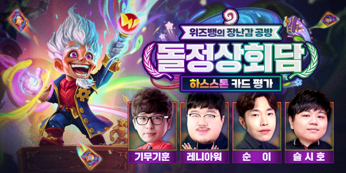 ... 위즈뱅의 장난감 공방 – 돌정상회담은 하스스톤 공식 유튜브, 치지직, 아프리카TV 채널에서 3월 10일 일요일 낮 2시부터 방송된다. 이번 방송은 다음 확장팩에서 새롭게 선보이는 2단 합체 질리악스 3000와 하스스톤을 대표하는 추억 속 캐릭터를 포함한 신규 카
