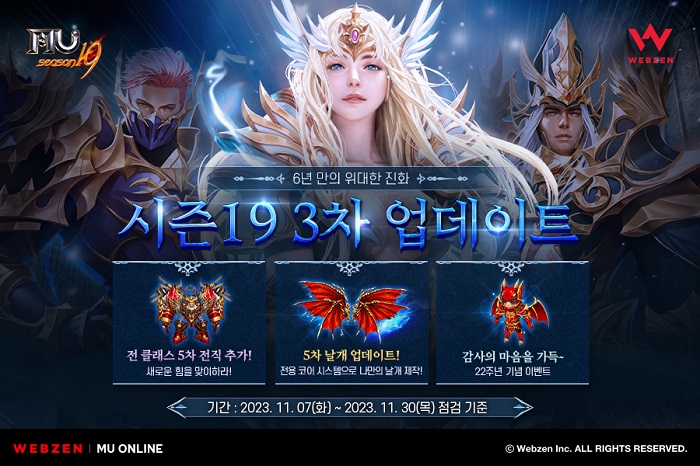 ... 이용자는 새롭게 추가된 '5차 날개 성물'과 '최상급 마정석'으로 5차 날개 제작이 가능하다. 특히 이번 5차 날개만의 특징인 '날개 코어' 장착 시 외형과 추가 옵션도 얻을 수 있다. 웹젠은 '5차 전직' 추가로