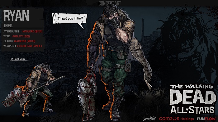... 기계 공장 기술자 출신으로서 직접 만든 전기 톱을 사용해 주변 적을 기절시키는 등 다양한 전방 공격 스킬을 구사한다. 특히, 마주 보고 있는 적에게 빠르게 접근해 연속으로 치명타를 가하는 워리어로 활용성이 높다. 업데이트를 기념해 ‘생존 지원 7일’