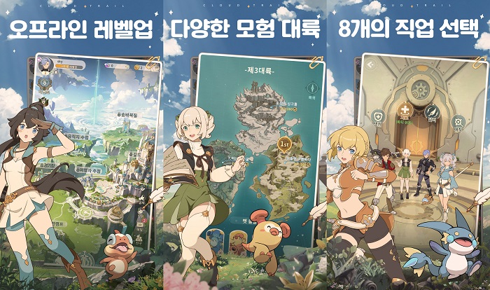 ... '클라우드 트레일'은 편안하게 즐기는 방치형 캐주얼 게임으로 24시간 자동 방치 전투는 물론이고 끊임없는 수익,몹 사냥과 레벨업이 자유롭다는 점에서 굉장히 매력적이다. 그리고 가속 버프를 통해 파티원들과 함께 넓은 들판부터 신비로운 동굴까지,거대한 세계를 빠르