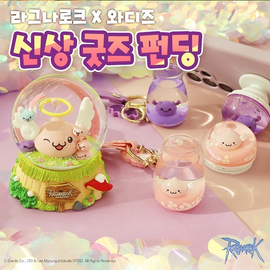 ... 라그나로크 스노우볼은 아기자기한 라그나로크 배경으로 꾸민 받침대 위에 포링, 엔젤링, 데빌링이 한데 어우러져 있으며 스노우볼을 흔들면 캐릭터 위로 새하얀 눈이 내려 귀여운 매력에 영롱함을 더했다. 워터볼 키링은 포션병 디자인, 워터볼 스마트톡은 물방울 디자인의 케이스 안에