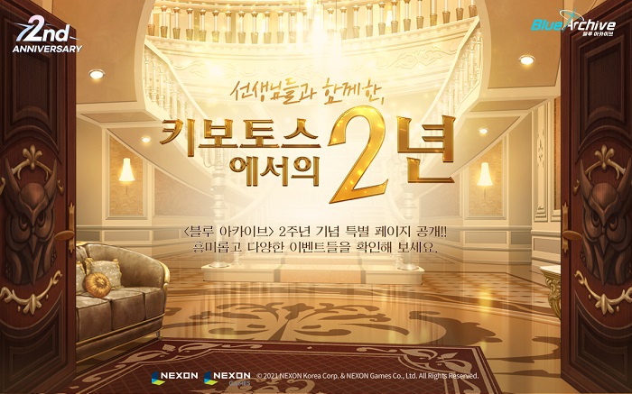 ... 넥슨은 ‘블루 아카이브’ 출시 2주년을 앞두고 이용자들이 ‘키보토스’에서 함께한 시간을 돌아보는 콘셉트의 특별 페이지를 오픈하고 10월 30일까지 사전등록을 진행한다. 사전등록 참여자에게는 10월 31일 점검 후 ‘청휘